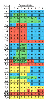 (D), ansonsten eine weitere Karte ziehen (H) bzw. verdoppele deinen